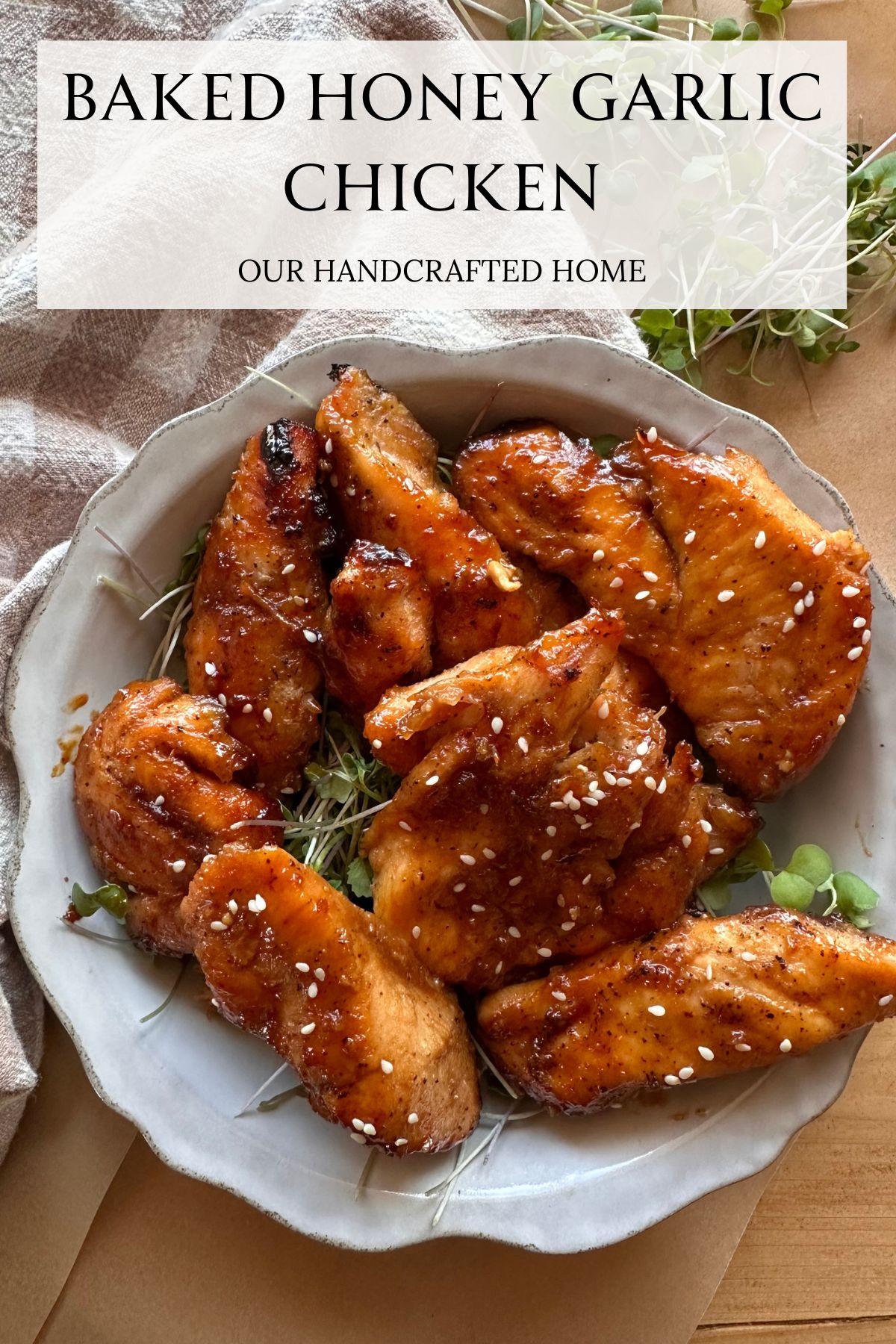 I shared over on Instagram recently that I’m in the middle of my 40 day refined sugar fast. I have missed being in the kitchen and baking, but saw a recipe for a baked honey chicken that I thought looked delicious. I put my own spin on it with some different spices and seasonings, baked it until it was beautifully golden, and the result was a meal that my entire family gobbled up in mere seconds.