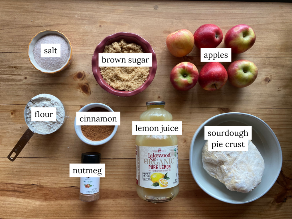 Note: The sourdough pie crust recipe makes enough for two 9 inch pie crusts, or a double crust pie recipe. I recommend making the crust, splitting the dough in half, shaping into two separate discs, and then wrapping in plastic wrap to store in the fridge. This will make it much easier later on when preparing the top and bottom crust for this apple pie recipe.